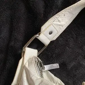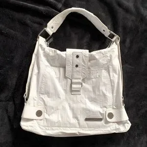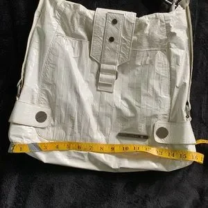 This is such a cute bag and in great shape it has a natural crackle look . Lots of pockets . I just never use larger bags anymore