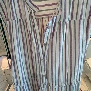 Stylish jumpsuit with vertical stripes. Button-up front. Sleeveless design. Ideal for casual outings.