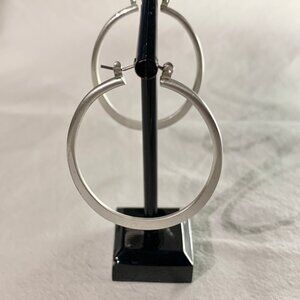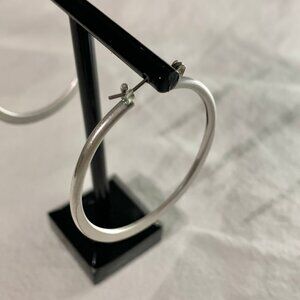 Matte Brushed Silver Tone Hoop Earrings Flat Leverback Modern Minimalist