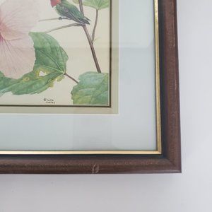 Matted & Wood Framed Wall Art Print Hummingbird Hibiscus Flower Gallery Wall