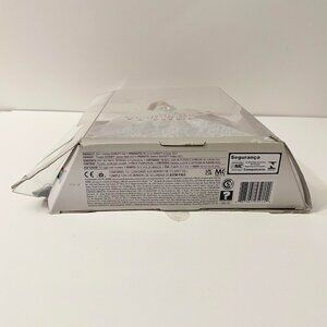 This barbie is in a very damaged box. Its dented and opened on multiple sides. It has tears, creased and the card on the back is wavy and damaged. Please see all photos for exact doll.
