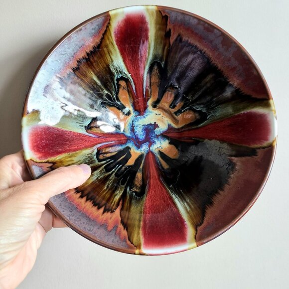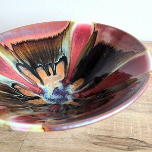 Matthew Patton signed pottery. Large multicolored handmade ceramic bowl.