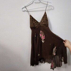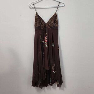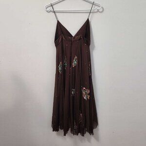 Matthew Williamson Brown Butterfly High Low Asymmetric Silk Designer Dress Small
