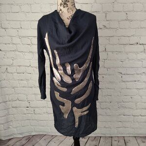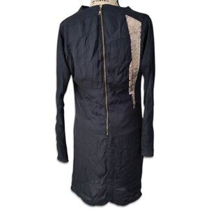 Matthew Williamson Designer Sheath Drape Front Dress Silver Sequins Blue Size 2