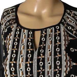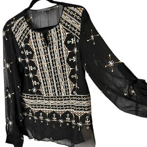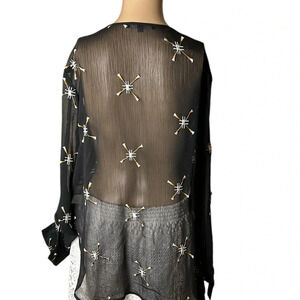 Matty M sheer artsy embroidered blouse S boho,hi lo, whimsy,dark fairy,goth