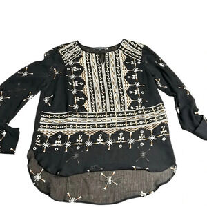Matty M sheer artsy embroidered blouse S boho,hi lo, whimsy,dark fairy,goth