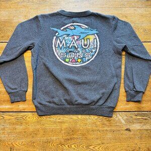 Maui And Sons Crewneck Sweatshirt Mens Small Grey Surf Shark Graphic Long Sleeve