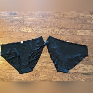 New Maurice 1x cotton panties. 2 pairs Black.Prices on tags are in USD. scalloped lace edges. Hipster style. (Free add on with $100 purchase)