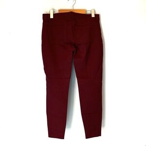 Details- Burgundy skinny jeggings with zipper detail on pocket