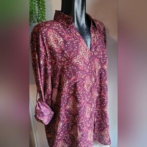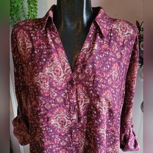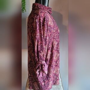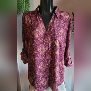 Maurices Burgundy and Tan Floral Print Blouse XXL