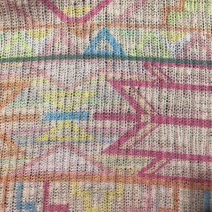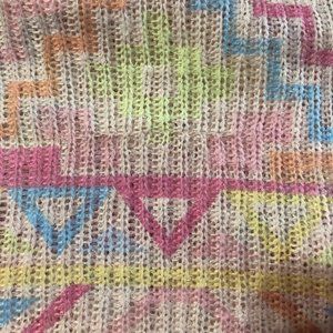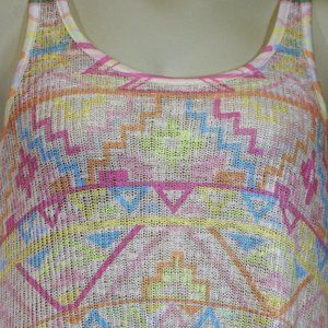 Details: Beautiful crocheted tank. More of a soft colour palette in pinks/oranges with a few pops of colour. Racerback. Nice and light for summer.