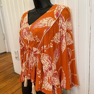 Maurices Floral Flounce Sleeve Boho Peplum Top, Size Medium