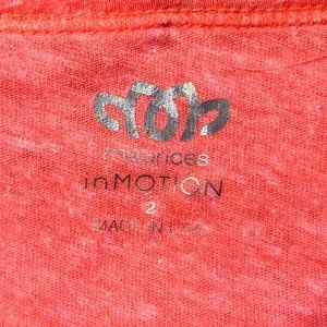 Details: Fluorescent Peach Long Sleeve Tee. Scoop neck. Tribal print on front and back as well as sleeves. Gold foil accents. Part of Maurices inMotion line. Very soft fabric. Wide cuffs.