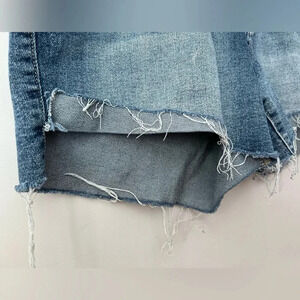 In excellent, clean condition. These have a raw edge hem to them to give a bit of a distressed look. The hem is stitched (tacked) up in the front for a stylish look. More of a medium wash. Functional front and back pockets.