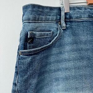 In excellent, clean condition. These have a raw edge hem to them to give a bit of a distressed look. The hem is stitched (tacked) up in the front for a stylish look. More of a medium wash. Functional front and back pockets.