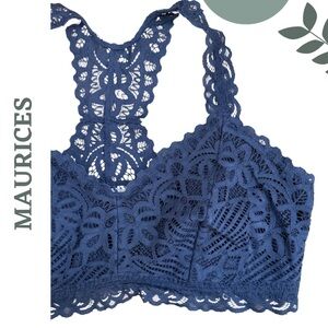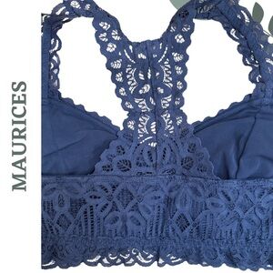 Maurices Navy Lace Racerback Bralette | Feminine & Comfy | Scallopef Edge Large