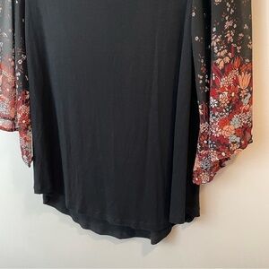 Maurices Sheer Floral Bell Sleeve Top Sz M Black Red Mixed Media Boho Shirt EUC