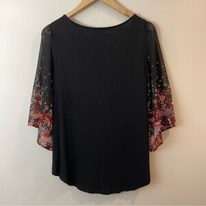 Maurices Sheer Floral Bell Sleeve Top Sz M Black Red Mixed Media Boho Shirt EUC