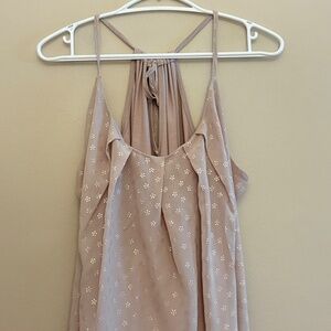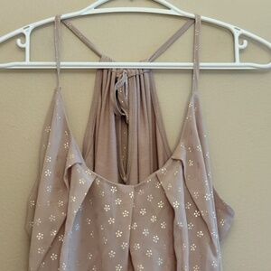 Maurices Taupe Ruched Tank Top with Flowy Layer & Gold Design