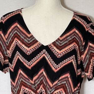 Style: Chevron Stripe, Tie Front, Split Sleeve