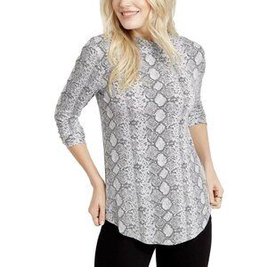 Maurices Womens Long Sleeve Top Size L White Gray Snakeskin Mock Neck Stretch