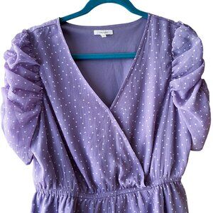 Maurices Women's polka dot mesh ruched sleeve peplum blouse. Size medium.