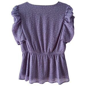Maurices Women's Polka Dot Mesh Ruched Sleeve Peplum Blouse Size Medium