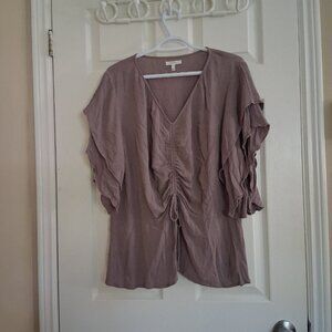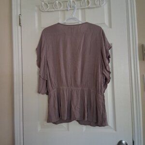 Maurices Women's Size XXL Mauve V Neck Ruched Front Ruffle Short Sleeve Blouse