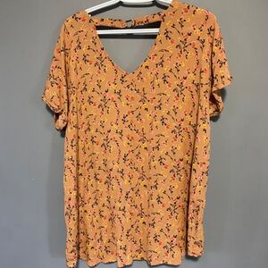 Maurices XXL Short Sleeve Mustard Yellow Floral Blouse