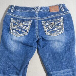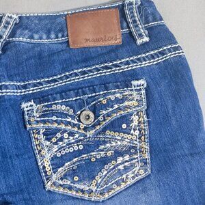 Maurices jeans women's size 5/6 ink blue colour Low rise Boot cut Embroidered