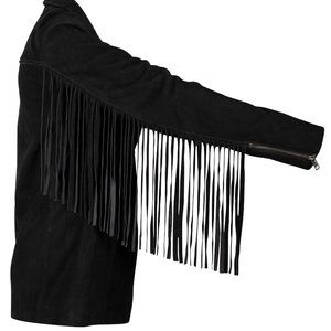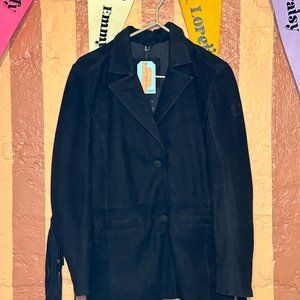 blazer styled leather jacket in soft nubuck leather, with fringe down the arms.