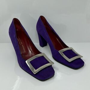 High quality Nice chrome rectangle buckle Sz 6 us In very good condition 3 inch heels