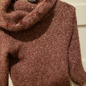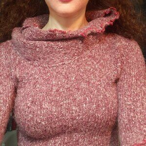 Mauve Fitted Sweater with Loose Fold Over Cowl Neck, Size XS