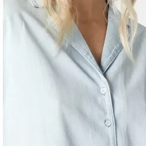 This stylish blue top from Mavi features a short sleeve design with a notched collar, offering a modern and relaxed fit. The boxy, cropped silhouette adds a contemporary touch, making it a versatile addition to any wardrobe.