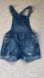 Chic dark blue denim overalls. Adjustable straps and front pocket. Distressed style with button details.