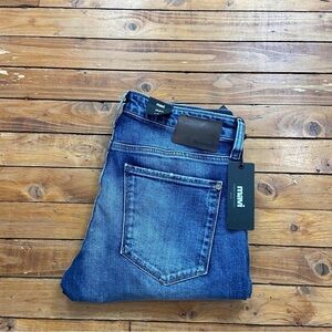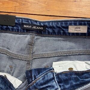 Mavi Jake mens blue jeans 32/34 slim leg distressed ripped denim
