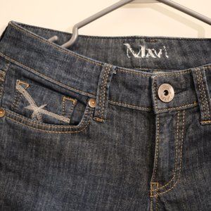 Mavi Jeans Cora Low Rise Wide-leg Flare Dark Indigo Wash Gold Pearl Stitch 26/30