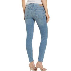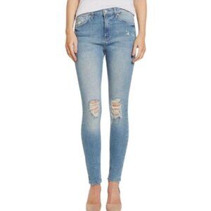 Designed with a modern high-rise fit, Mavi's Lucy is a super-skinny style that fits slim throughout the hip, thigh, and leg opening for an elongated shape. This version is in a medium blue wash with distressing and ripped knees.