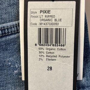 Mavi Pixie Mid-Rise Light Ripped Organic Blue Shorts - Size 28