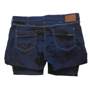 These dark wash denim jeans have a five pocket design with belt loops. Regular button and zipper closure, dress them up or wear them casually.