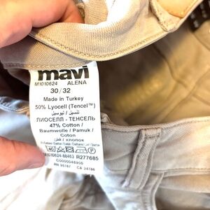 Mavi sand beige Alena stretch wide leg high rise jeans new with tags. Straight leg, high rise, stretch twill made of 50% TENCEL™ Lyocell, 47% cotton and 3% spandex 5-pocket design. Colour is accurate in the stock photos, mine are taken in artificial light. They seem pretty close to the mocha mousse colour of the year! Officially they are ''straight'' but I see them more like a wide leg, and they were also described as wide on the Simons website. Marked sized 30. All measurements are approximate and taken with the garment laying flat: Waist 16" Front rise 10" Inseam 31" This item comes from a smoke free, pets friendly home. Recycled bags/box used when possible. Please, let me know if you'd like any additional info. Thanks for watching!