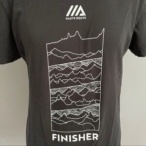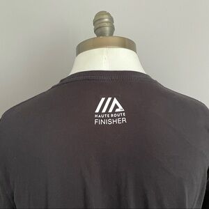 Black w/ white graphic of the Rockies, the trail for the Haute Route climb