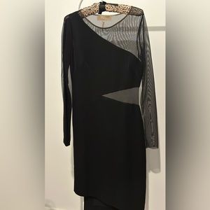Black, cocktail, edgy black dress. Could be used for any occasion.