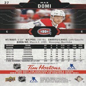 Max Domi - 2020/2021 Tim Hortons Collector's Series Card