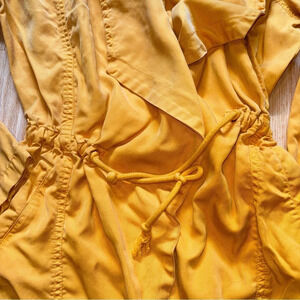 Max Jeans Mustard Color Tencel Drape Open Front Long Length Jacket Size XS