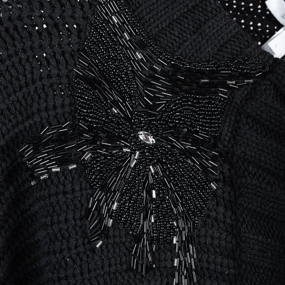 Max Mara Black Chunky Knit Beaded Boxy Cardigan
