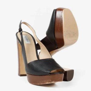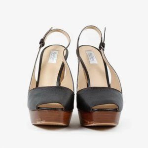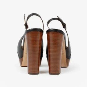 From Max Mara, these stunning platform slingbacks feature a black leather upper with a tapered square open toe, a slingback strap with a side buckle, and nude leather insoles and lining. Beautifully crafted with a stacked wooden platform and heel, these heels come with a leather outsole.