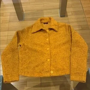Stay stylish and warm with this chic mustard yellow jacket. Perfect for any occasion.