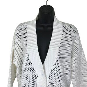 Max Mara Studio Crochet Like White Cotton Blend Cardigan Size M