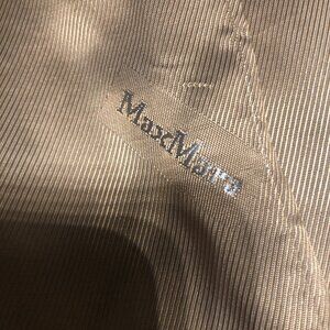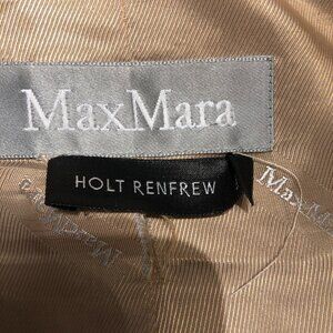 This luxurious camel coat by Max Mara is crafted from a plush blend of alpaca and virgin wool on a silk base, offering exceptional warmth and a soft, voluminous texture. Designed with an oversized fit and wide lapels, it exudes timeless elegance and cozy sophistication.